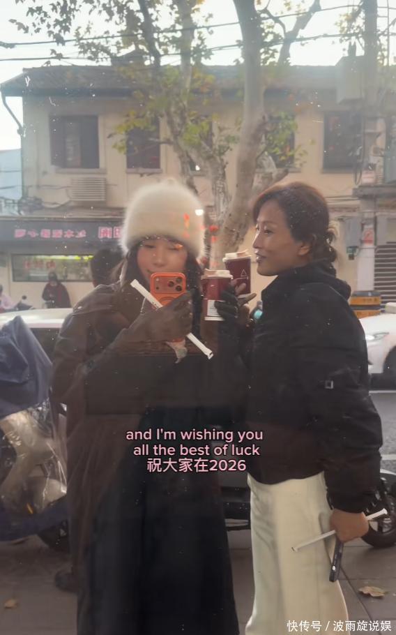 让人意外的是,杨海润的妈妈也罕见出了镜,上海这段时间天气比较冷,两人穿着黑色羽绒服,一人拿了一杯咖啡,杨海润还带了一顶白色的毛绒帽子,看起来暖暖和和的。