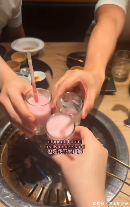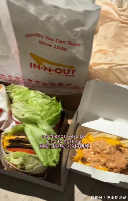 带她解锁了很多好吃的,有烤肉和各种各样的汉堡等等,看着杨海润和朋友捧杯的时刻,别提有多幸福了。